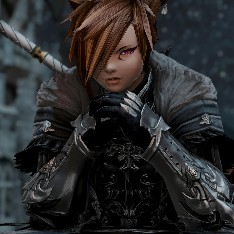 A'ilah Zoma was born several years after the fall of Ala Mhigo, the event which caused her family to flee. Assigned male at birth, as well as growing up in a diverse refugee camp, she became accustomed to suffering and sorrow; those she looked up to falling into alcoholism, the poor and hungry turning to crime for scraps of food and gil, and a strange feeling of never feeling right in her body. The natives of Ul'dah treated her no better. A'ilah was routinely cursed and mistreated, called a dog when hunger forced her to beg for food. This squalor was all she knew, an ever-present companion as she grew.Upon turning 14, she was gifted her first blade, a shoddy hand-me-down that would allow her to assist with hunting for food. However, rather than battle animals, she set on a different course: With her blade, she made her way to the Bloodsands, set on finding some way to bring gil home for her family. Wishing to avoid bringing attention to her home, A'ilah forged a false last name by mixing together two she had heard, going by Ilah Krailen, and set out to earn her glory. It would be a goal never achieved, however, for not a single victory did she achieve. Lacking skill and proper equipment, the Ala Mhigan was unable to best any opponent she crossed. A turn of fate brought money her way, with the onlookers of battles taking a shine to the Miqo'te for her powerful will and unwillingness to give up until her body could move no longer. This drive brought her repeated bouts, adding more money to her name. Upon her 16th nameday, she had collected enough money to undertake two tasks: One, to purchase new equipment and set out for Ala Mhigo, and two, to begin a transition to female. The process was slow, little by little coming along until A'ilah finally felt happy in her own skin, and finally having proper equipment to her name. Casting aside prior names and statuses, she chose a new name, with a new purpose: She was now Ashe Krailen, one ash from which Ala Mhigo would be reborn.Journeying across Eorzea, she found herself facing a challenge: Her directional skill was horrible, and being unable to read disallowed her from proper use of a map. Rather than finding her way to Ala Mhigo, the Seeker ended up in Coerthas, finding herself ill-suited for the bitter cold. There she fell, death's embrace close to her, before a kind Knight of House Fortemps rescued her from the snow. Nursing her back to health in Camp Dragonhead, the Knight ensured she was fed and clothed, a debt which Ashe would repay by lending her blade. Along with the Temple Knights, Ashe found herself a dragonslayer, battling the Dravanian hordes. One day, she was presented with excellent news: For her contributions to the wellbeing of Ishgard, and from the Knight's praise, she would be granted entrance to the Holy See as a ward of House Fortemps.Making her way into the city, it was similar to what she had seen in Ul'dah; in spite of the city's magnificence, squalor and suffering abounded, the common citizens forced to weep in the cold, always at the mercy of the Temple Knights. Seeing one such knight's abuses, she quickly stepped in, putting the fear of Halone in the man before he fled. Intending to kill him, she readied to chase before a voice called out to let him run. Looking for this voice, she would find herself facing another knight, clad in darkened armor and wielding a claymore. Introducing herself as Talia Fray, this knight would offer Ashe a chance to harness her emotion and sense of justice to defend and avenge the weak; the chance to become a Dark Knight. Being given a claymore of her own, Ashe trained under Fray, her intense emotions quickly reigned in by her own willpower and the training she was given. Before long, she had become a full-fledged Dark Knight, learning of Fray's true nature as a mirror to herself, and taming her in battle.Once more she had intended to make for Ala Mhigo, yet another distraction came about. A trial by combat was to be held between the Knights of the Heaven's Ward and a young Elezen boy, along with his Lalafellin companion. Ever despising the Ward, she made her way to the arena, hearing the calls for someone to take the Lalafell's place. Without thinking, she called out and lept into the pit, taking her blade from her back and readying for battle. By her new companion's magic and her might, the Knights were thrashed, forced to admit defeat. After the battle, the boy and his companion revealed themselves to be Scions of the Seventh Dawn; an organization which Ashe had heard of, but never given any thought to. Leaving them to their own devices, she set out for Ala Mhigo once more... Only to stumble into Dravania, and once more into confusion.After time spent in the wilderness, Ashe finally made her way back to Ishgard, only to hear the sounds of battle taking place on the Steps of Faith. Making her way over, she witnessed the great wyrm Nidhogg locked in battle with her old companion and a red-haired woman. Knowing that she could not turn a blind eye, Ashe ran to a spire, climbing up for a vantage point before launching herself onto the wyrm to garner its ire. With blade in hand, she and her new companions struck down the wyrm, only to find a man within, the eyes of Nidhogg attached to his pauldrons. Each taking one eye, Ashe and the red-haired woman listened as the Lord Commander, Ser Aymeric, called at them to cast the eyes into the abyss. While her counterpart did so, Ashe was much farther away, mishearing what was said. Rather than casting the eye away, she plunged a hand into it, absorbing the powerful aether housed within. However, unlike with the man before her, she was not consumed. Her own rage, her own hatred, forced the eye to submit, her will dominating that of the wyrm. Even as she fell unconscious, new power stirred within her, ready to be unleashed in battle.Upon her awakening, she was greeted by the Scions; each introduced themselves, including Alphinaud Leveilluer, X'hanna Lheld